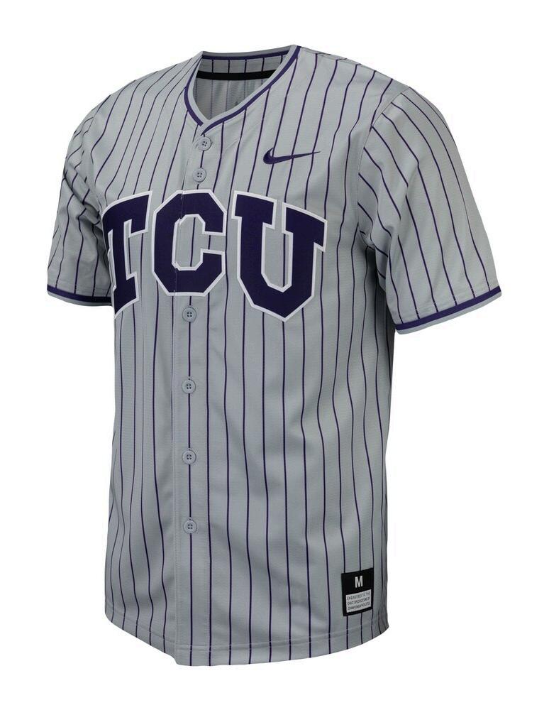 TCU Horned Frogs Pinstripe Replica Baseball Jersey - Gray, Limited Replica Fan Edition