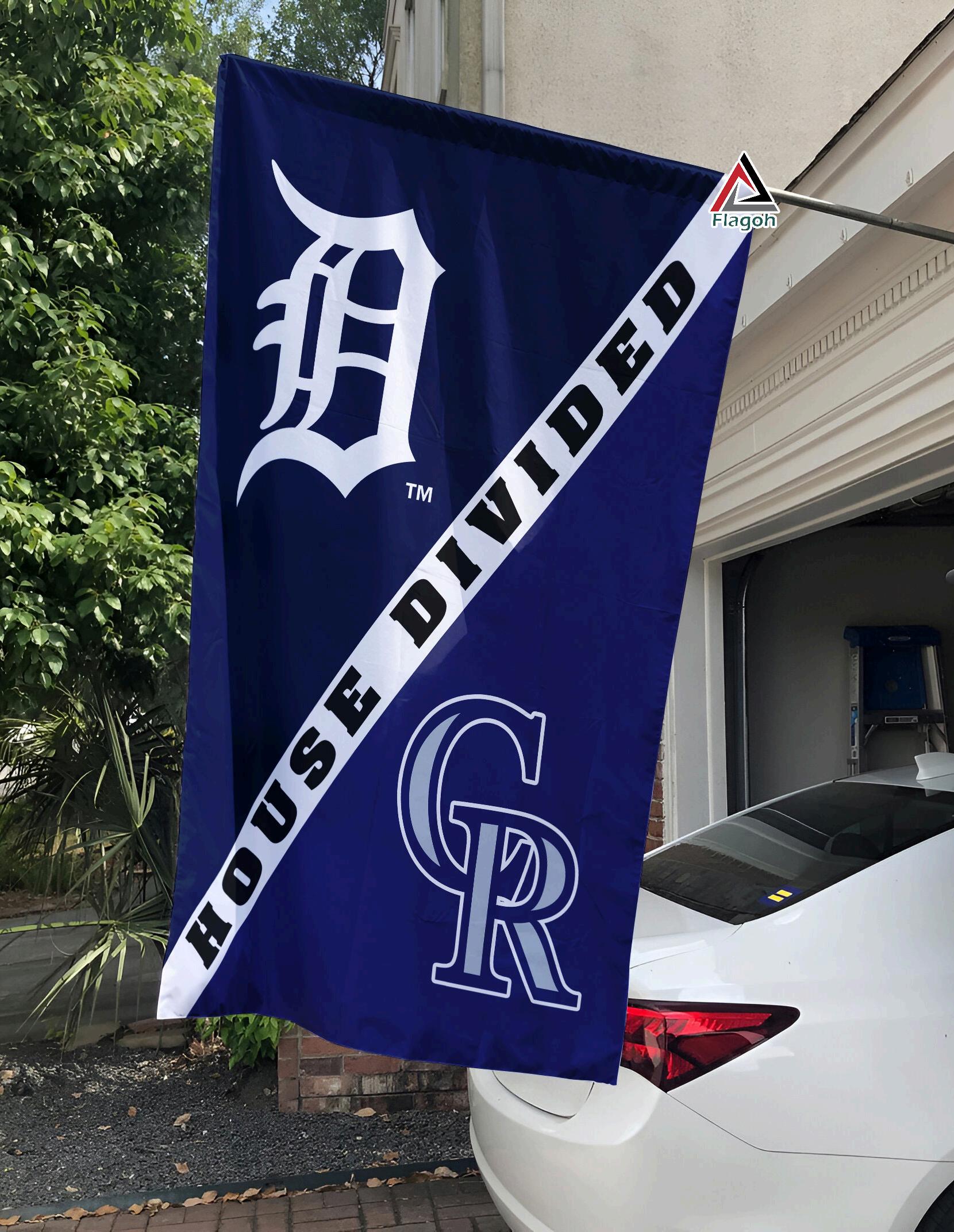 Whether you're a devoted Detroit Tigers fan or a passionate supporter of the Colorado Rockies, the Tigers vs Rockies House Divided Flag, MLB House Divided Flag makes an excellent way to show o your loyalty is uni ue ag features a vibrant design combining the bold logos and colors of both iconic MLB teams, perfect for fans who share their fandom divided down the middle.