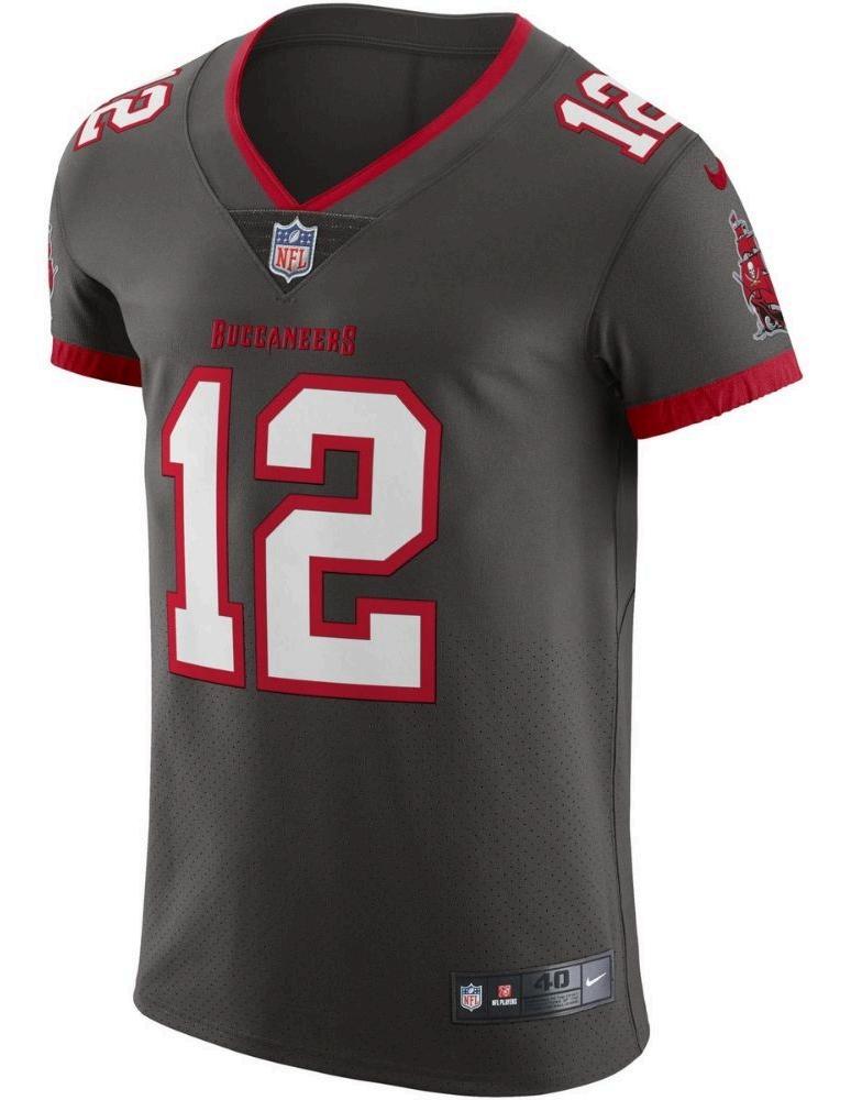Featuring the iconic Buccaneers pewter color, complemented by bold white and red accents, this jersey perfectly captures the team spirit e high- uality printing of Tom Brady's name and number ensures a premium look that lasts season a er season.