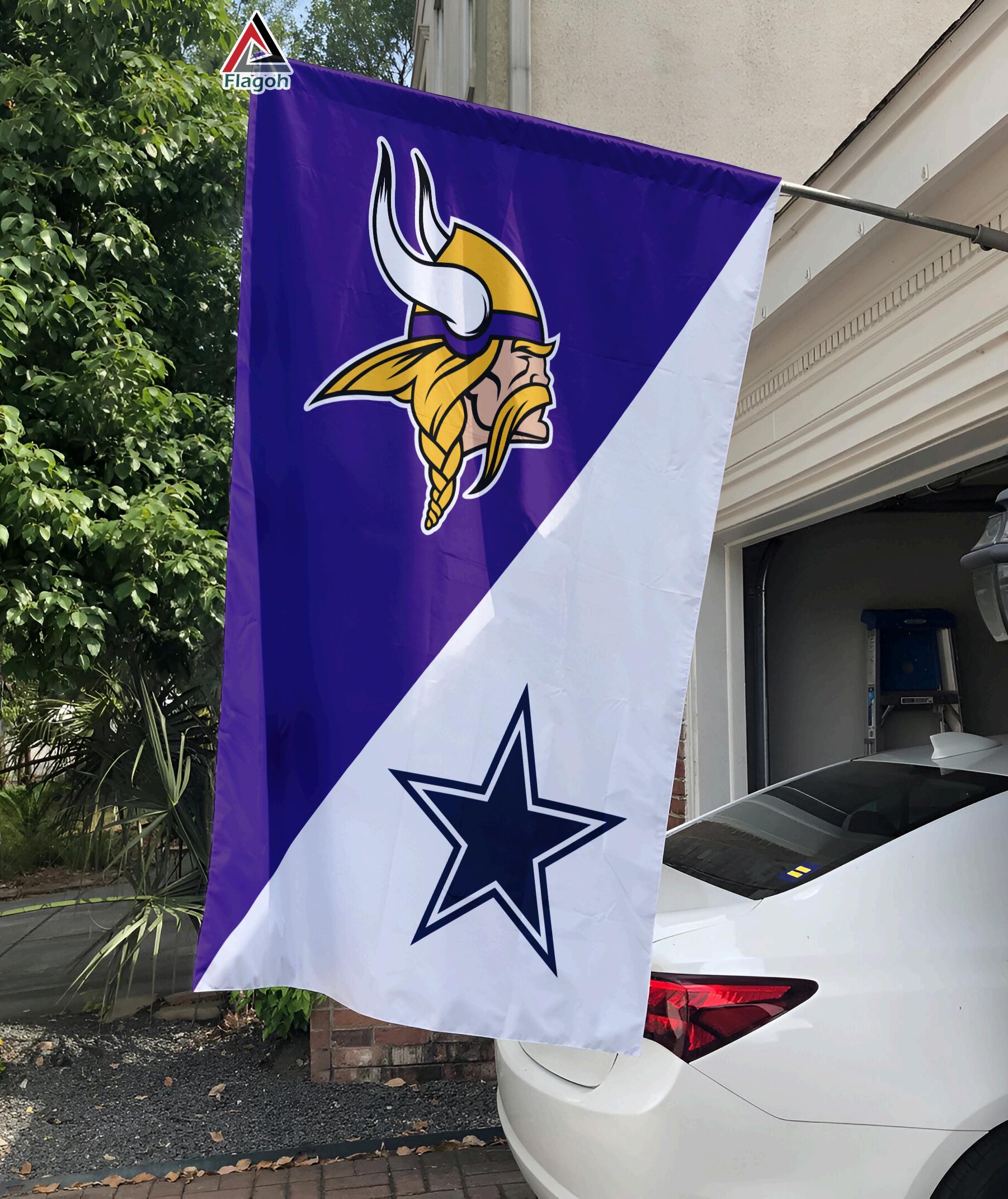 Embrace your NFL pride and make a statement that resonates With this house divided flag, your home becomes a beacon for fans of both the Minnesota Vikings and Dallas Cowboys. Donʼt miss out on owning this must-have NFL collectible.