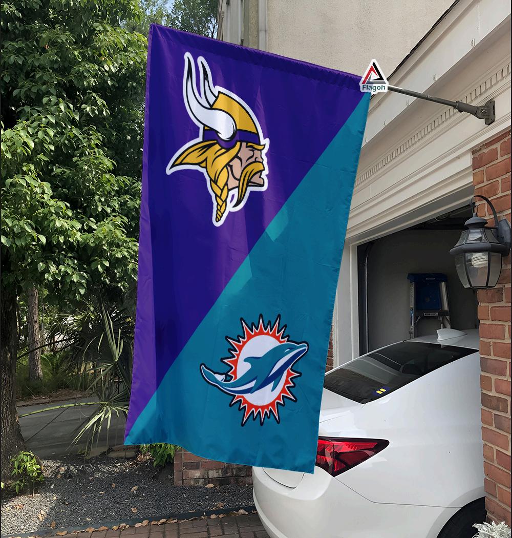Vikings vs Dolphins House Divided Flag, NFL House Divided Flag