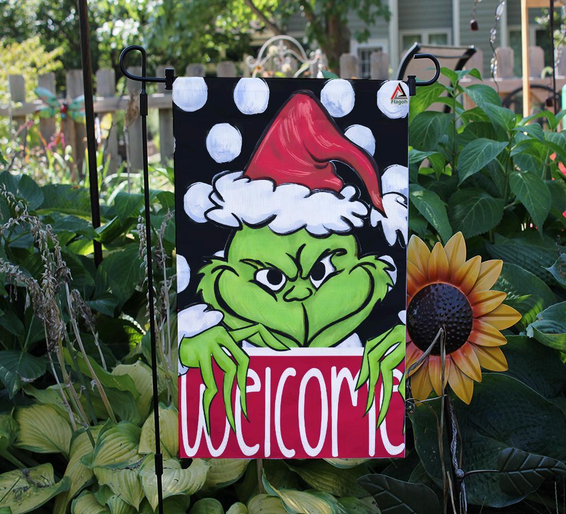 Welcome Christmas Grinch Garden Flag: Charming Seasonal