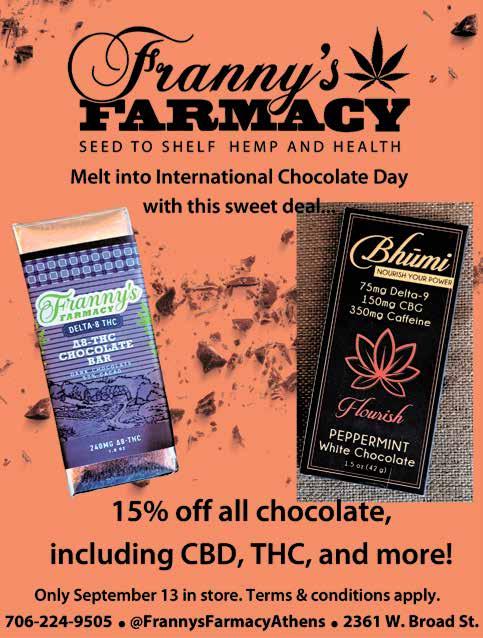 2 FLAGPOLE.COM · SEPTEMBER 6, 2023 WE ARE NOT SALESMEN, WE ARE EDUCATORS IMPORTED SPIRITS, WINES, AND BEERS 706-353-8881 • 1452 PRINCE AVENUE NORMALTOWN CONTACT OUR IN HOUSE EXPERTS FOR YOUR NEXT RENDEZVOUS WINE :JS.WINE1452@GMAIL.COM BEER : JSBEER1452@GMAIL.COM LIQUOR: JSLIQUOR1452@GMAIL.COM INFO AT YOU FINGERTIPS, SCAN OUR INFORMATIONAL QR CODES TO LEARN MORE ABOUT OUR SELECTION - WHAT’S TO COME!• POP-UP TASTINGS • SPECIALIZED CLASSES • ATHENS CIGAR SOCIETY • LOYALTY PROGRAMS GAMEDAY GET THE BEST OF YOU? Recover at The Foundry’s Sunday Brunch, every week from 10 am – 1 pm. Dig into brunch favorites like omelets, smoked salmon bagel boards, French toast sticks and more. Celebratory (or hair of the dog) cocktails available, too. No reservations needed, walk-ins welcome. 295 E DOUGHERTY ST | 706 549 7020 | GRADUATEHOTELS.COM/ATHENS To see what else is happening at The Foundry, visit our events calendar. A fundraiser for AthFest Educates R EGI STE R @ A THHAL F.COM ATH FE S T EDU CATE S 5K OCTOBE R 21 ATH ENS, G A HA L F MAR A THO N OCTO BE R 2 2 RUN COU RSES THR OU GH : Sceni c Do w nto wn | Hi s tori c A then s Nei ghb orhood s UG A Ca m pus (Hal f Mara thon Only ) Enjoy Live M us ic A lon g The W ay JO IN 2, 000+ FELLO W RU NNERS T AKI NG ON TH E A THH A LF R AC E W EE K END !