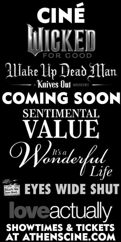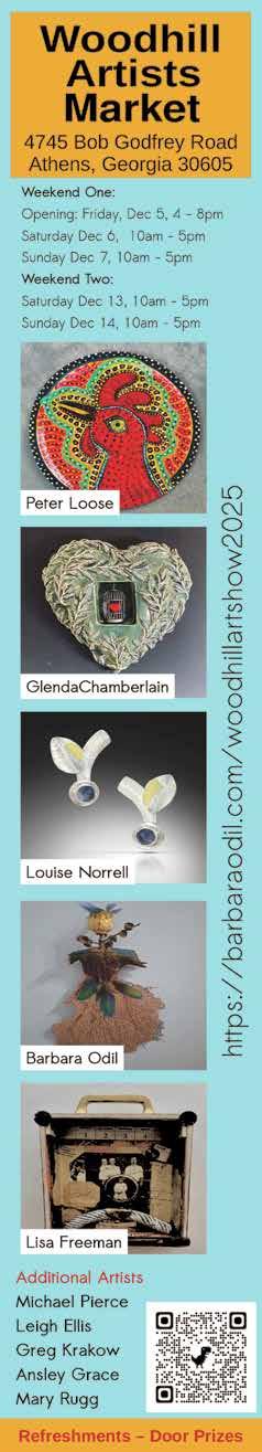 OPEN AUDITIONS (Athens Symphony) The Athens Symphony is holding auditions for qualified musicians. www.athenssymphony. org/openings THE VAGINA MONOLOGUES (The Cottage) Open to all ages, backgrounds, those who identify as women or those who identify with having a vagina. Auditions held Dec. 4 and 9, 6:30–8:30 p.m. and Dec. 7, 2–7 p.m.. Performances Feb. 5–7, 2026. www.northgeorgia cottage.org
