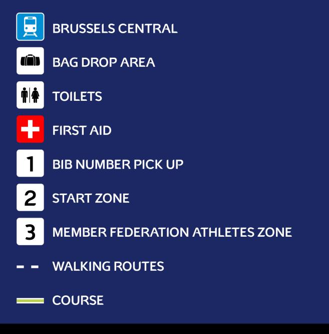 Het Warandepark in Brussel is makkelijk bereikbaar te voet of met de fiets. Er zijn verschillende publieke fietsenstallingen in de omgeving van de startzone.