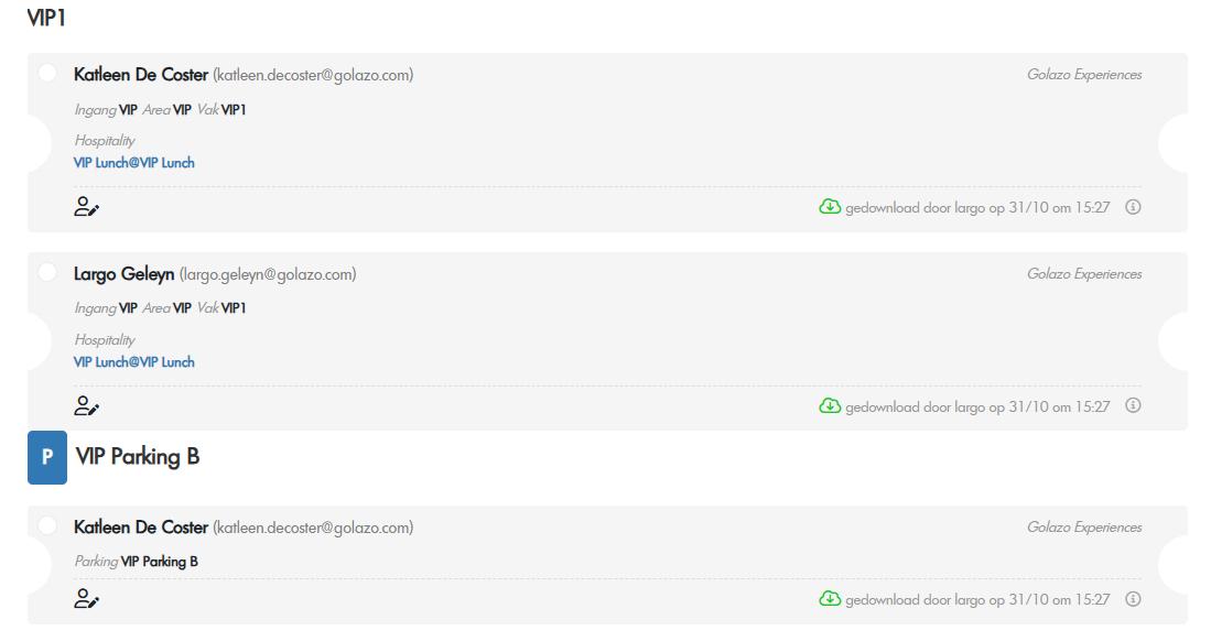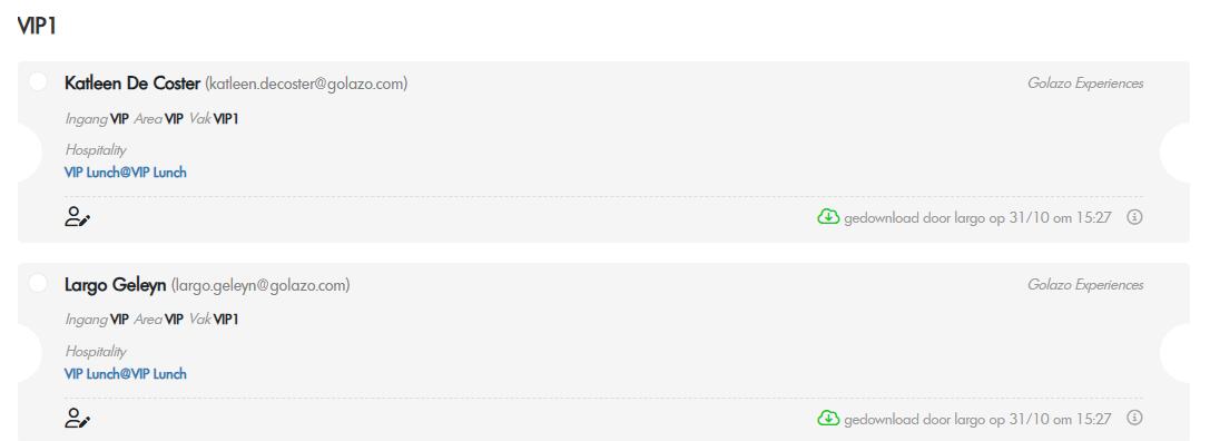 Hierbij een voorbeeld van tickets die toegewezen zijn aan een bepaalde gast.
