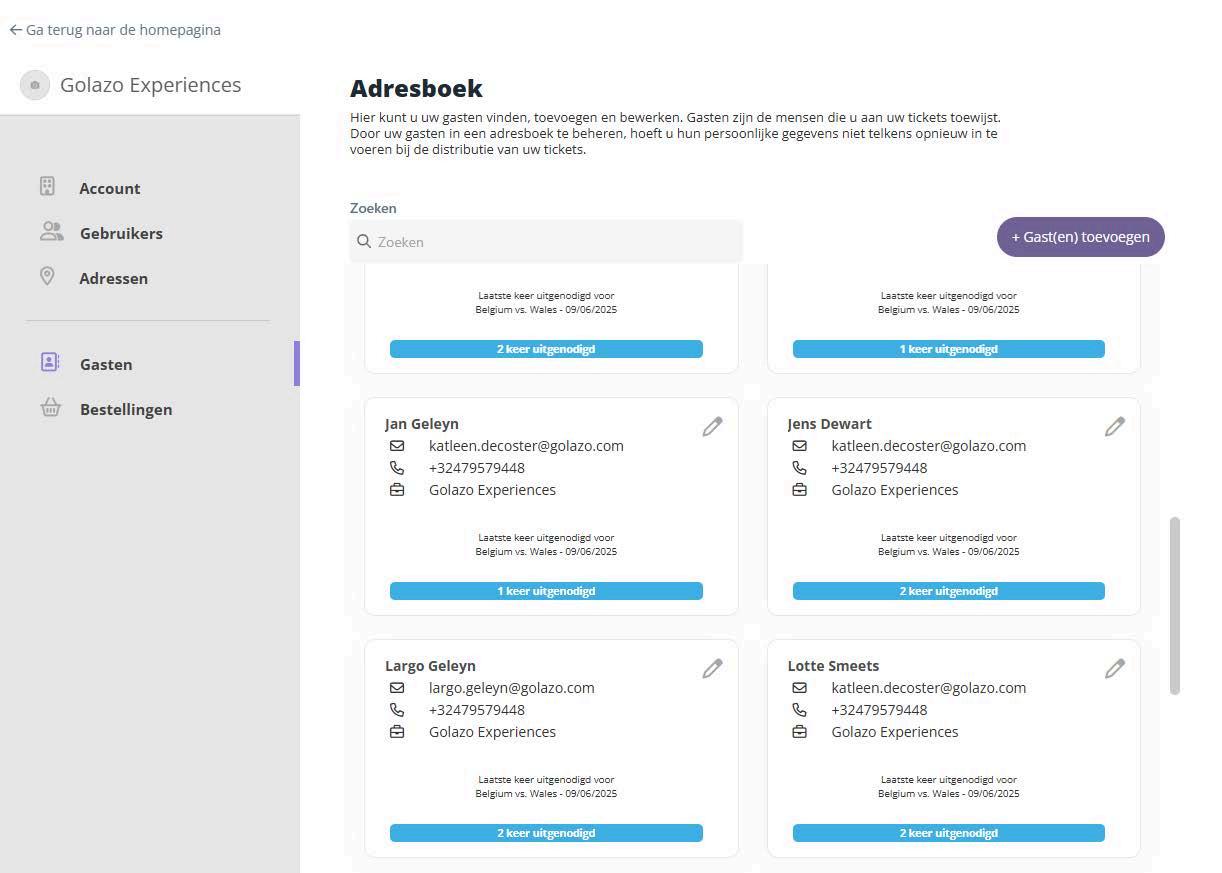 Hierna staan deze gasten in de adresboek en kan u makkelijk tickets toewijzen.