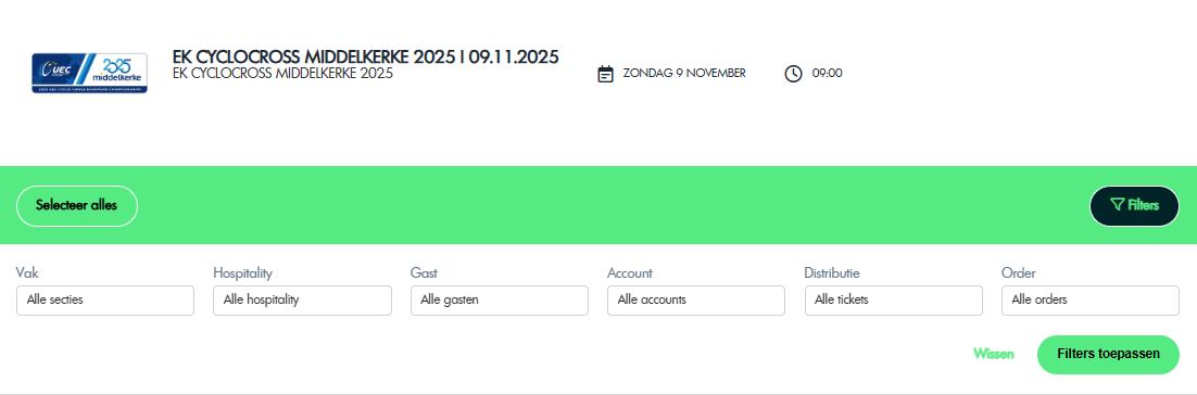 • VAK: toon alle tickets, toon VIP tickets of enkel parking tickets