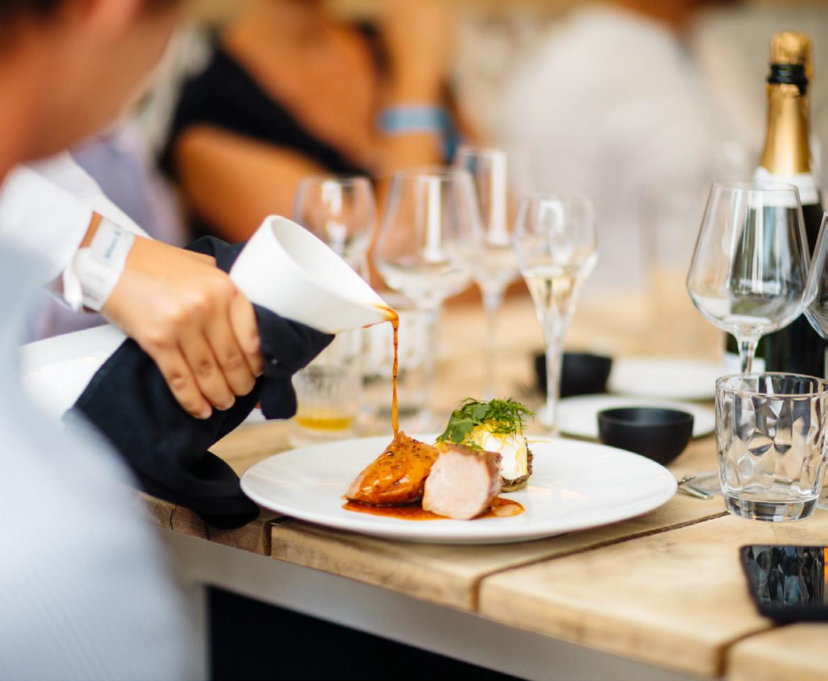 > We ontvangen jou graag in de VIP-mezzanine, aan de voet van de Raidillon, voor een premium walking dinner met uitzicht op deze iconische bocht.
