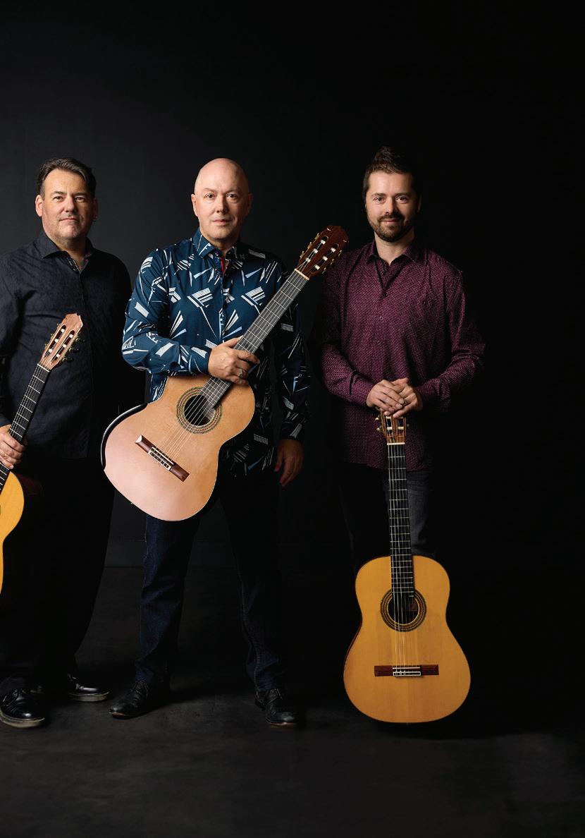 The Montreal Guitar Trio (MG3) surprises, amazes, exalts, and ignites audiences with their dynamic and breathtaking stage presence. This passionate trio has been sharing their work with fervor for over 25 years. In addition to their three guitars, these multi-instrumentalists also sing and play the violin, mandolin, bass, accordion and more.