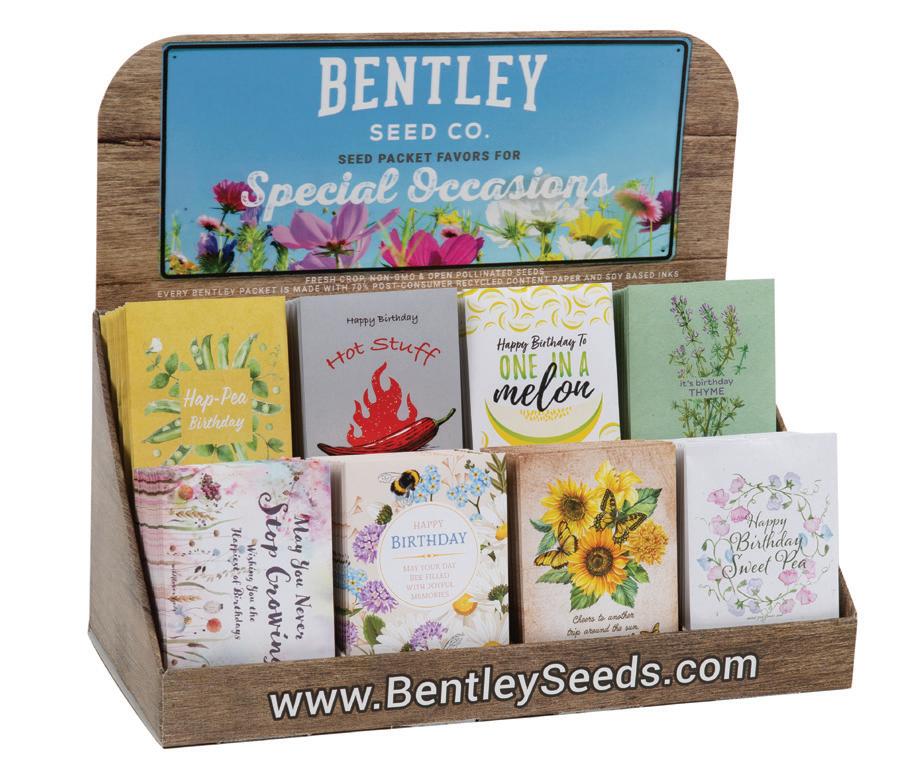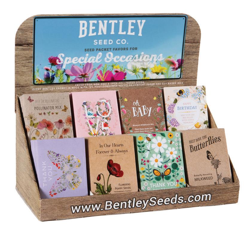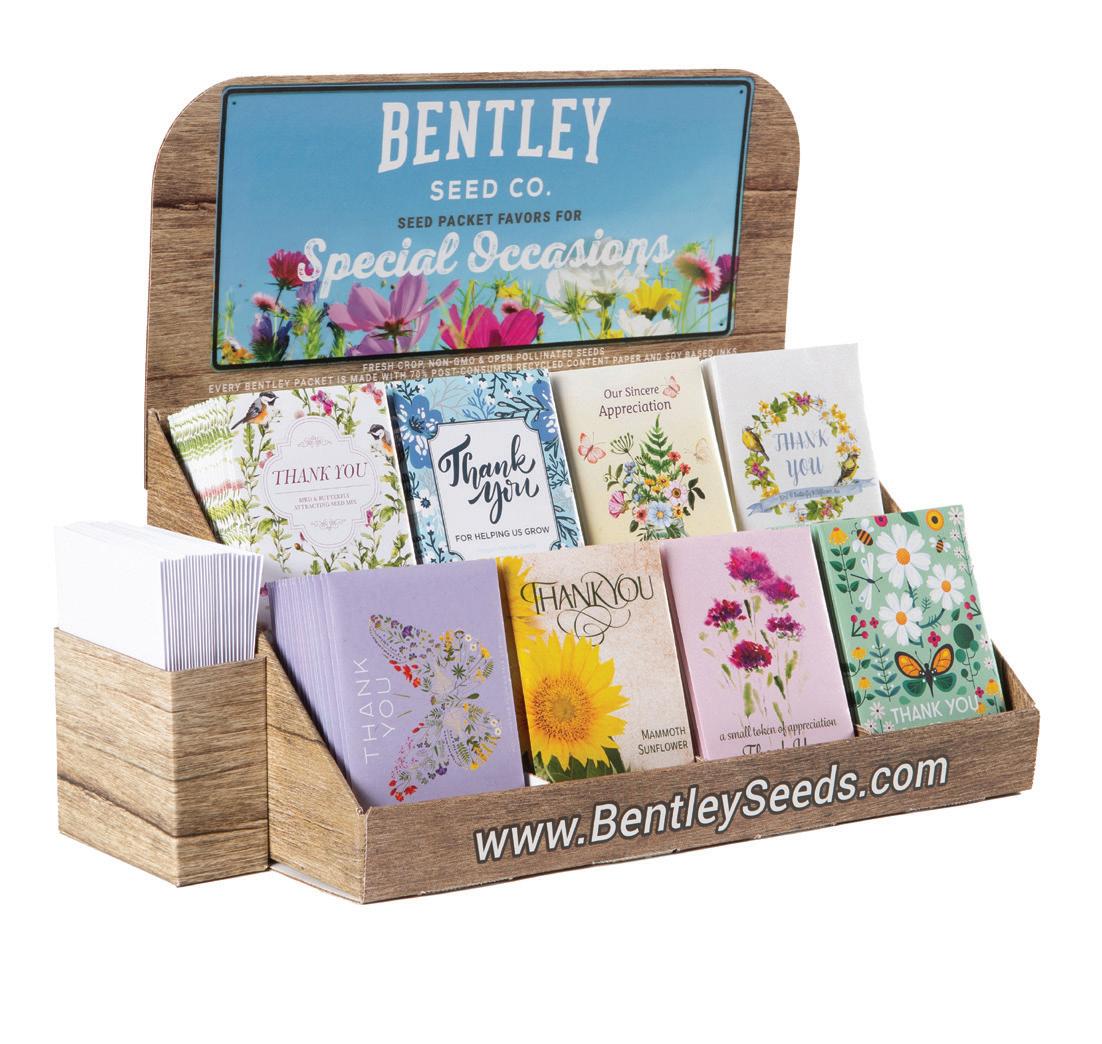 Our customers love our beautifully crafted special occasion seed packets. From Birthday and Thank You tributes, to Love sentiments and Pollinator supporting packets, make celebrations and events extra memorable. Easy-to-assemble corrugated seed packet displays and a variety of bulk special occasion packets make setting up and refilling simple.