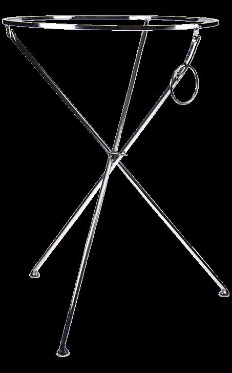 Stainless steel folding table stands 26” high and holds any of our 20” large trays. Folds flat for easy storage and transport.