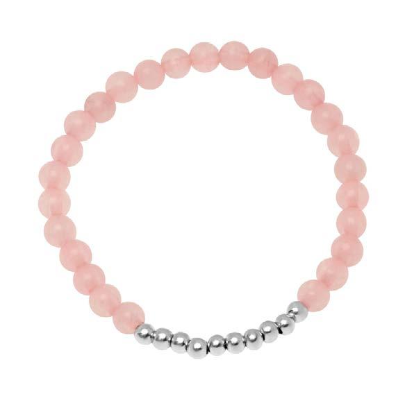 A. Rose Quartz & Polished Bead Stretch Bracelet in Sterling Silver - 1718B-RQ