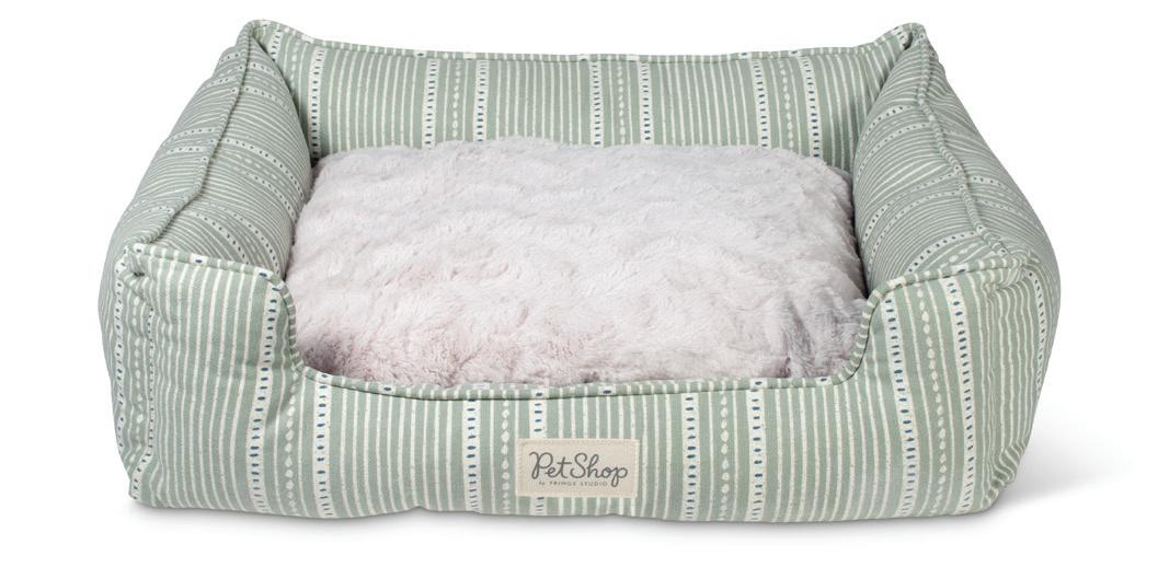 100% cotton canvas exterior with ultra-soft spun recycled water bottle filling and overfilled bolster to support