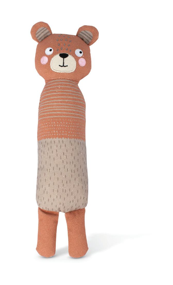 Cotton canvas printed with water based, non-toxic inks. Extra loud squeaker and crinkle paper inside each toy. Toy comes attached to backer card. Minimum order 4 per design.