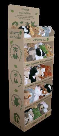 Impressive stand made from recycled cardboard, designed to display our beautiful Eco Cuddlies collection - which are also all made from 100% recycled materials! Can also be used to display any Wilberry Toys or Puppets. H 58” x W 24