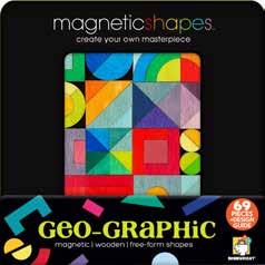 Show off your creative side with this vibrant collection of wooden magnetic puzzles! Each set contains a unique combination of colorful geometric shapes and comes packaged in an attractive, travel-friendly tin. Create your designs right inside the tin or on any metal surface. Includes a guide for 10 colorful patterns.