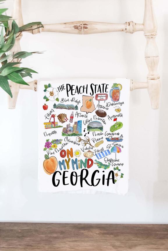 EACH TOWEL CONTAINS HAND DRAWN ORIGINAL ARTWORK SPECIAL TO EACH STATE. 100% COTTON. MEASURES 19X28.