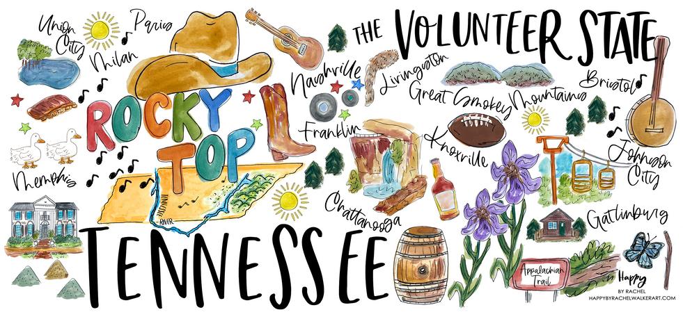 EACH TUMBLER CONTAINS HAND DRAWN ORIGINAL ARTWORK SPECIAL TO EACH STATE. ALL TUMBLERS ARE DISHWASHWER SAFE.