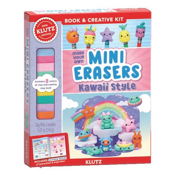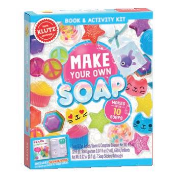 LEGO® MAKE YOUR OWN MOVIE $2499 Age 8+ Trim 10" x 10" x 3/4" UPC 7-30767-13720-5 Case Pack QTY 6 ISBN 978-1-338-13720-0 LEGO® RACE CARS $2999 Age 7+ Trim 10" x 10" x 1 3/4" UPC 7-30767-80206-6 Case Pack QTY 6 ISBN 978-1-338-80206-1 MAKE & STYLE HEADBANDS $2199 Age 8+ Trim 8" x 9" x 1 1/2" UPC 7-30767-56616-6 Case Pack QTY 6 ISBN 978-1-338-56616-1 MAKE CLAY CHARMS $2299 Age 8+ Trim 8 1/2" x 10 1/2" x 1 3/4" UPC 7-30767-49856-6 Case Pack QTY 6 ISBN 978-0-54549856-2 MAKE GLITTER CLAY CHARMS $2199 Age 8+ Trim 8 1/2" x 10 1/2" x 1 3/4" UPC 7-30767-85846-9 Case Pack QTY 6 ISBN 978-0-54585846-5 MAKE YOUR OWN BATH BOMBS $2299 Age 10+ Trim 8 1/2" x 10 1/2" x 1 3/4" UPC 7-30767-15880-4 Case Pack QTY 6 ISBN 978-1-338-15880-9 MAKE YOUR OWN DISCOVERY BOTTLES $1999 Age 6+ Trim 8" x 9" x 2 1/2" UPC 7-30767-27127-5 Case Pack QTY 6 ISBN 978-1-338-27127-0 MAKE YOUR OWN GLOW-IN-THEDARK PUFFY STICKERS $1999 Age 6+ Trim 8 1/2" x 10 1/2" x 1 3/4" UPC 7-30767-77541-4 Case Pack QTY 6 ISBN 978-1-338-77541-9 MAKE YOUR OWN MINI ERASERS $2299 Age 8+ Trim 8 1/2" x 10 1/2" x 1 3/4" UPC 7-30767-03750-5 Case Pack QTY 6 ISBN 978-1-338-03750-0 MAKE YOUR OWN PUFFY STICKERS $1999 Age 6+ Trim 8 1/2" x 10 1/2" x 1 3/4" UPC 7-30767-21019-9 Case Pack QTY 6 ISBN 978-1-338-21019-4 MAKE YOUR OWN SOAP $2199 Age 6+ Trim 8 1/2" x 10 1/2" x 1 3/4" UPC 7-30767-10645-4 Case Pack QTY 6 ISBN 978-1-338-10645-9 MAKE YOUR OWN TINY CAMPER $2299 Age 8+ Trim 8 1/2" x 10 1/2" x 1 3/4" UPC 7-30767-56618-0 Case Pack QTY 6 ISBN 978-1-338-56618-5 17 16 KLUTZ • FALL 2024 KLUTZ • FALL 2024