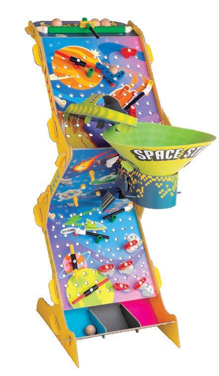 What goes up must come down! Make the coolest gravity-powered marble maze with LEGO builds that spin, flip, whirl, and plonk. Heavy- dut y chipboard pieces connect to make a one-anda-half-foot tower with endless customization options to add the LEGO Technic mechanisms.