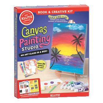 Comes With 24-page book of ideas and inspiration, 3 canvas paper boards, Acrylic paint in 6 colors 2.7 fl oz (80 mL), 3 paint brushes, Palette knife, Paint palette, Display easel
