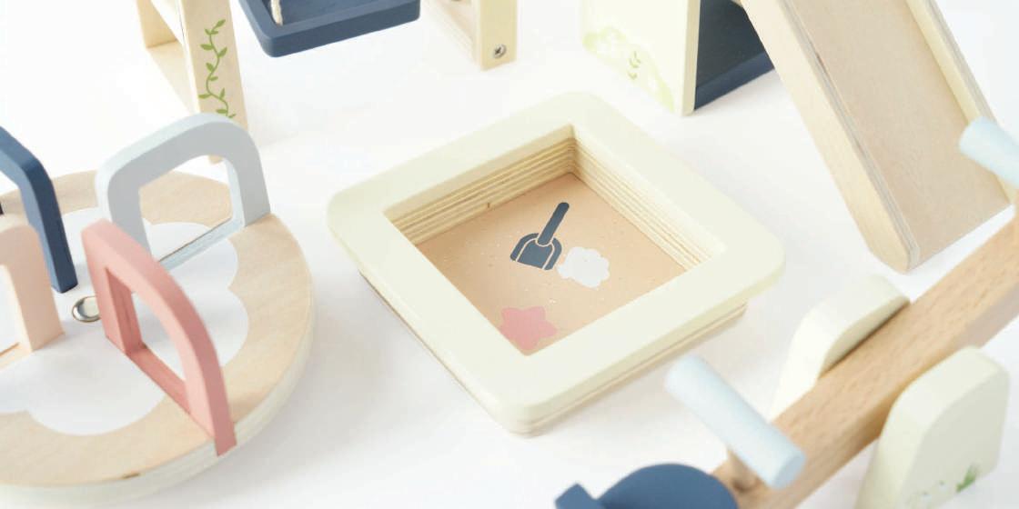 Introducing the perfect addition to a dolls house or a standalone playtime adventure - the Wooden Dolls Outdoor Play Set! This 5-piece set is designed to ignite children’s imaginations. With seven play features, this ensemble guarantees endless fun for little ones. Features include: a spinning merry-go-round, sandpit, seesaw, slide, and a climbing frame, complete with a fireman’s pole and swing. Scaled to fit dolls house dolls perfectly, this set is crafted from sustainable FSCTM - certified wood and is plastic free. Its pastel colours and natural exposed wood are sure to be memorable for all.