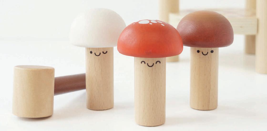 Each mushroom is beautifully hand-painted, with stained paints that are anti-chip. Sporting adorable smiley faces, the different pieces of this set are sure to bring a smile. The chunky hammer included in the set provides a perfect grip for little hands, enhancing fine motor skills and coordination. It is made with love and from sustainably sourced FSCTM - certified wood. Immerse young ones in the joy of hammering these delightful mushrooms, while nurturing their connection with nature.