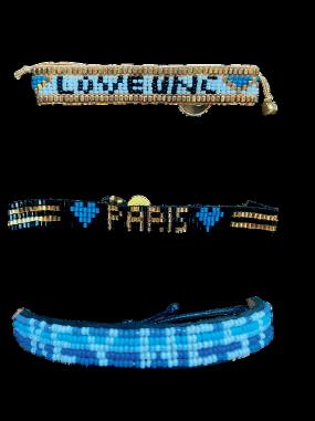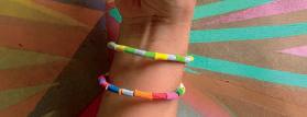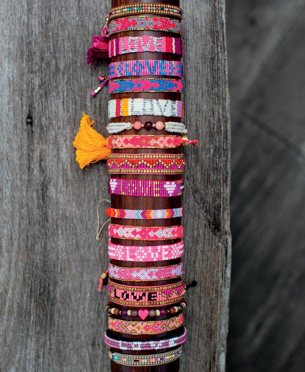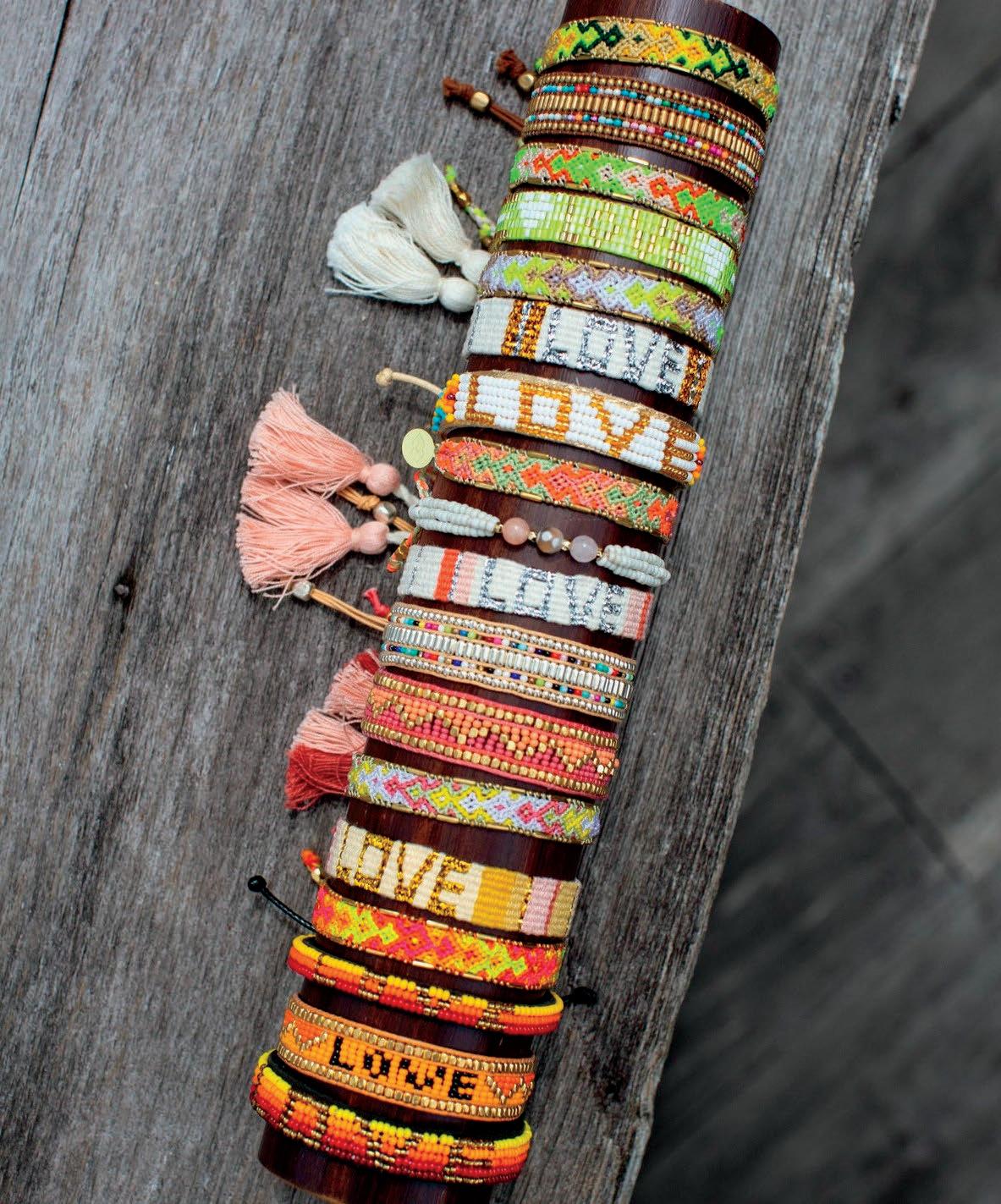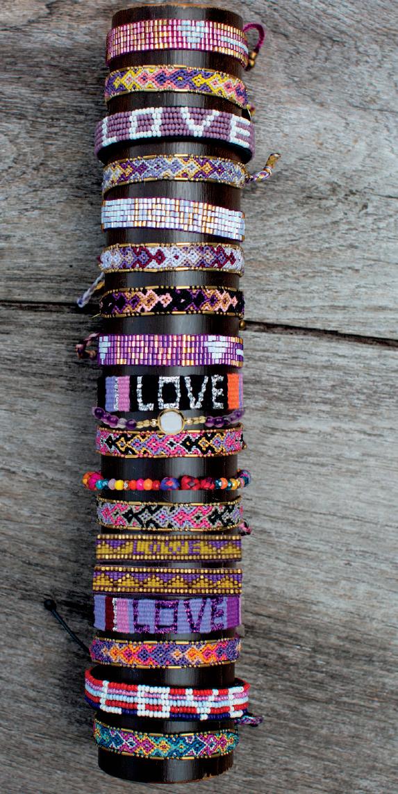 A selection of Love Is Project bracelets can be customized for any word or any color