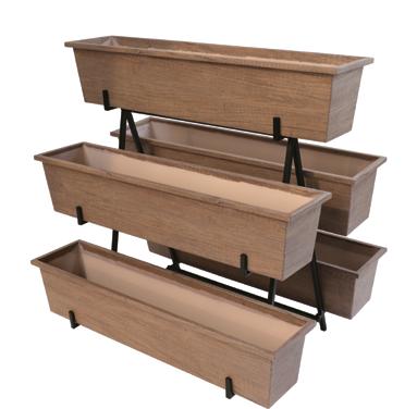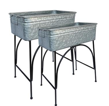 10 STANDING PLANTERS P1 1 P2 2 Galvanzied Metal Planter on Legs Drainage w/ Plug S/2 KD SET PE223002 22 x 13 x 27 $135.00 $115.00 (ICJAG|12334R 0/inner 1/case P1 2 P2 4 Metal 3 Tier Planter Scroll Top EA PE223015 20 x 15.25 x 31 $61.00 $52.00 (ICJAG|12347R 0/inner 2/case P1 1 P2 2 Metal Vintage Double Washtub Planter Drainage w/ Plug KD EA PE223003 15.75 x 8 x 31.5 $57.00 $49.00 (ICJAG|12335Y 0/inner 1/case P1 1 P2 2 Metal 3 Tier Planter with Chalkboard EA PE223016 16 x 36.25 x 47 $108.00 $92.00 (ICJAG|12348Y 0/inner 1/case P1 1 P2 2 Punched Metal Pot on Stand S/3 SET BY1351 10 x 10 x 28.5 $69.98 $60.00 (ICJAG|10891R 0/inner 1/case P1 1 P2 2 Wood Planters on Metal Stand Square S/3 SET FT1050 11 x 11 x 29.25 $79.98 $68.00 (ICJAG|10143R 0/inner 1/case P1 2 P2 4 Metal Framed Wood Planters S/2 SET FT1055 13.75 x 7 x 6.5 $37.98 $33.00 (ICJAG|10329Z 1/inner 2/case