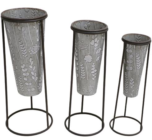 8 STANDING PLANTERS P1 1 Metal 20 Bucket Floral Display Stand on Casters KD EA PE223034 29.5 x 12 x 69 $170.00 (ICJAG|12366S 0/inner 1/case P1 1 P2 2 Metal 3 Tier Planters with Shelves Green EA PE223005 8 x 8 x 32 $78.00 $67.00 (ICJAG|12337S 0/inner 2/case P1 2 P2 4 Stamped Metal Plant Storage S/2 SET PF323028 12.5 x 8 x 9.75 $30.00 $26.00 (ICJAG|12289U 0/inner 4/case P1 1 P2 2 Metal Wire Cages Topiary S/2 Green SET PF323032 13 x 13 x 34.75 $73.00 $63.00 (ICJAG|12416U 0/inner 2/case P1 1 P2 2 Metal Butterfly Embossed Tricycle with Pots EA PH123043 22.5 x 9 x 21 $52.00 $45.00 (ICJAG|12461U 0/inner 2/case P1 1 P2 2 Metal 3 Tier Round Top Plant Stand EA PH123028 18.5 x 20.5 x 28 $63.00 $54.00 (ICJAG|12447Y 0/inner 1/case Standing Planters
