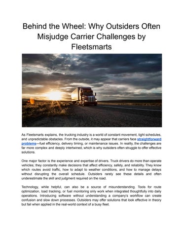 Fleetsmarts was founded with a perspective shaped directly by life inside the trucking industry. Long before offering services to other carriers, the company operated as a trucking business itself. Over more than a decade of working in that environment, its leadership repeatedly faced the same operational pressures as many smaller carriers across the North American market. Independent operators and growing fleets were working just as hard as larger companies. Yet, they often had fewer resources, tighter financial flexibility, and limited control over one of their biggest expenses. Fleetsmarts was created in response to that imbalance, with the intention of providing practical support built on real industry experience. In January 2018, the company officially launched its operations arm, focusing on factoring, fuel planning, and fuel optimization. These services were designed with a clear and practical purpose. Fleetsmarts aimed to give small- and midsize-carriers the financial clarity and fuel-management strategies they need to operate more confidently and compete more effectively. Because the company’s background comes from actual trucking operations, its approach emphasizes solutions that work in everyday conditions rather than theoretical systems. One of Fleetsmarts' primary services is factoring. In trucking, carriers often complete deliveries long before they receive payment. During that waiting period, they must still manage essential costs such as fuel, payroll, insurance, and maintenance. Fleetsmarts helps carriers address this challenge by turning unpaid invoices into faster access to working capital. By submitting load documentation, carriers can receive funds sooner and continue operating without the strain of extended payment cycles. This process helps maintain stability and allows carriers to focus on moving freight and growing their businesses.