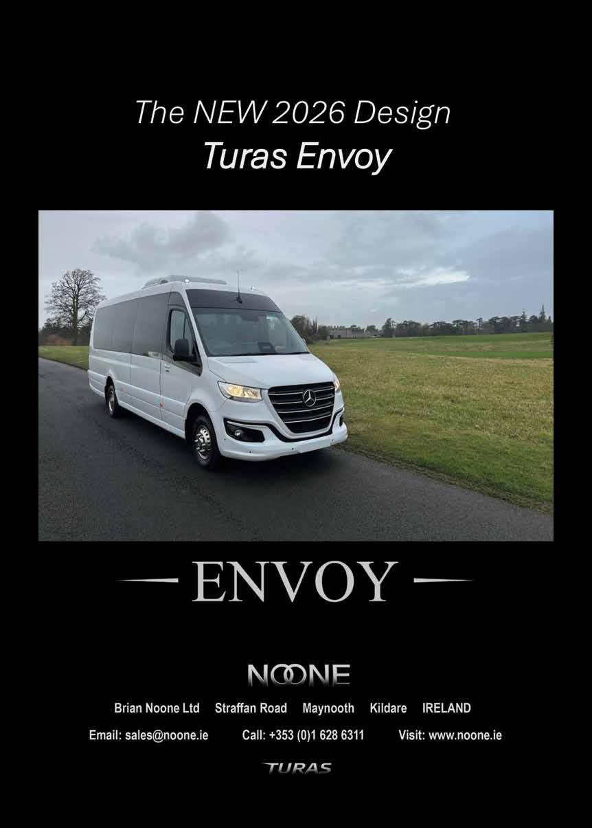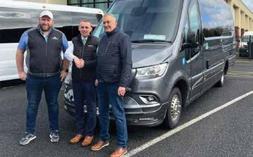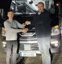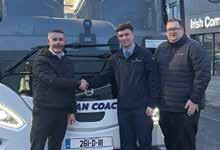 First time Volvo Bus customers Edwyn and Emily Siney from Siney Coaches (Laois) collected a new Volvo B8R MCV eVoTor 57 seater coach from Irish Commercials (Naas). The vehicle was sold through Diarmaid Thompson, Regional Account Manager in Ireland, who supports the customer as its fleet expands with a stylish, fuelefficient coach built for comfort, reliability and performance.