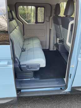 generation battery pack. Thanks to the heat pump fitted, the battery pack heats up quicker and also saves vital and valuable energy. Vehicle to Load power from the unit is an option also. Smoothness in the drive, vast spaciousness inside, high levels of visibility and ease of entry and egress are main attributes of the initial experience on board this 5-seat passenger version. Although compact in overall dimensions, the 5.5m long PV5 sits in between the C (3m2) and D (4m2) segments, therefore