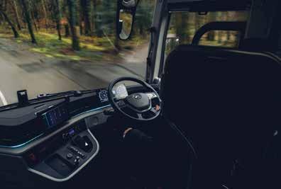 Inside the focus is on a move upmarket, with two-tone diamond-stitched seats featuring lateral adjustment, fold-down tables and footrests for a business-class feel. Generous overhead storage, LED lighting and large windows enhance the cabin, while drivers get a redesigned cockpit with a digital dashboard, integrated command screen and on-board CCTV.
