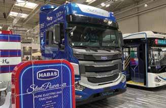 HABAŞ, which was among a number of Turkish exhibitors, introduced its HBS branded electric and hydrogen buses and electric tractors-units. The Steel Power-e 282 kWh LFP lithium-ion fully electric truck has been designed in-house with a 410 kW electric VOITH engine that provides 3,100 Nm of torque.