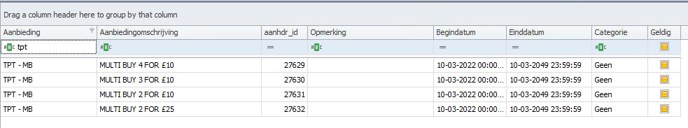 De lijst is alleen zichtbaar gedurende de looptijd en zolang er aanbod beschikbaar is.