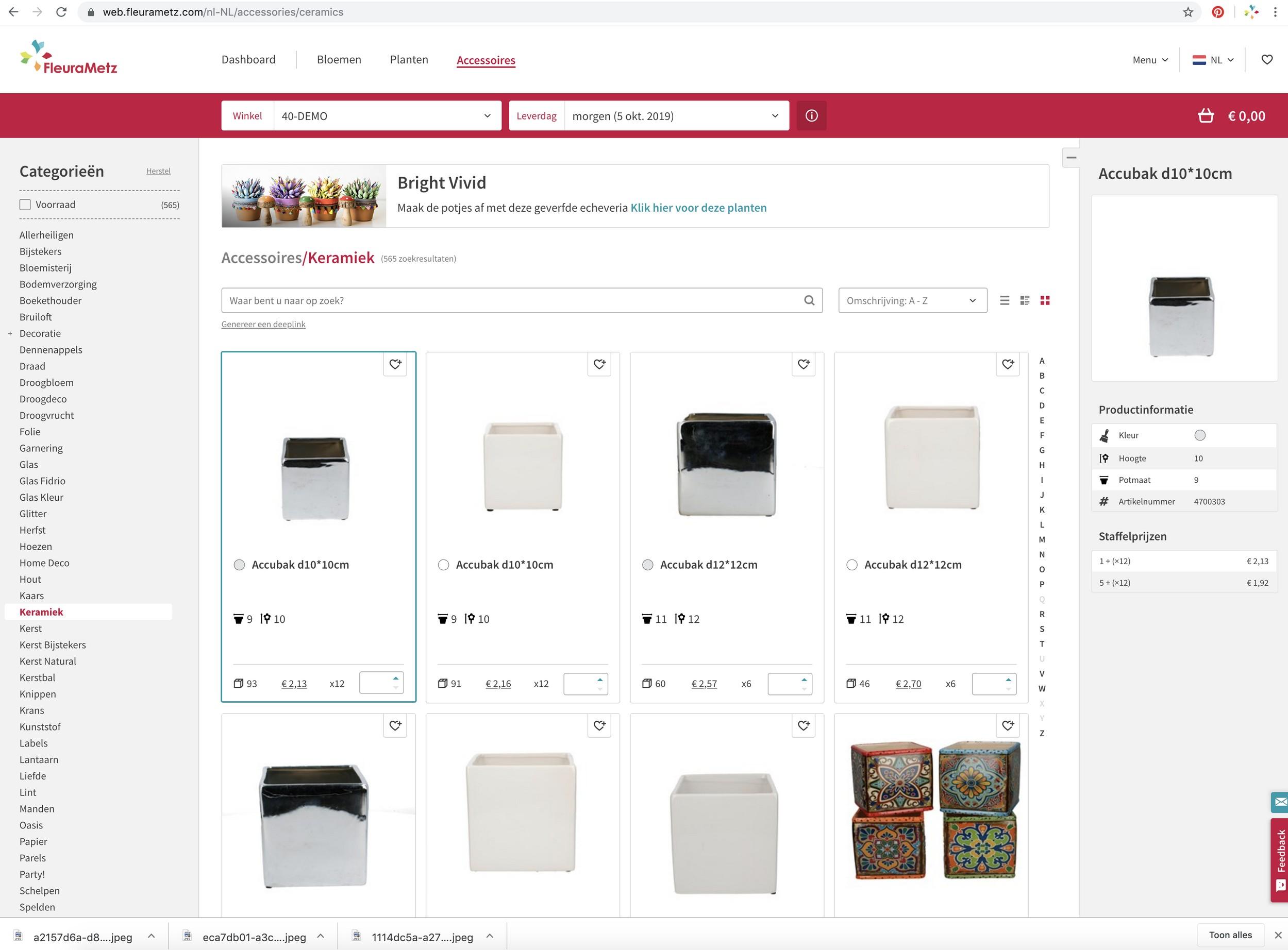 2 – 3 lijsten tegelijk zichtbaar (per categorie bloemen, planten of accessoires).