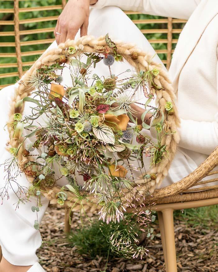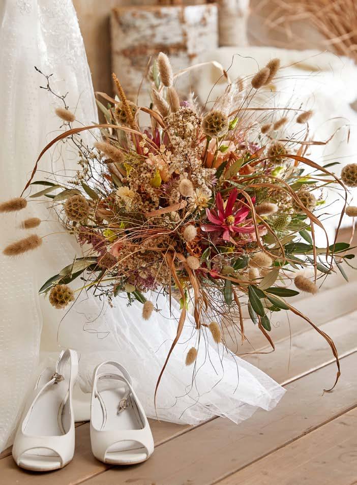Green is not only popular in colour, but also symbolises sustainability and more conscious living. More and more people are looking for more eco-friendly choices and this also applies to weddings. To capitalise on this, combine dried flowers and cut greens with reusable materials such as, wood and metal.