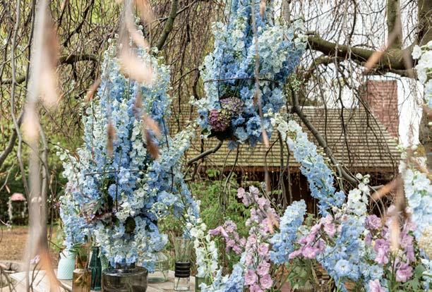 Let banisters or chandeliers shine with beautiful flowers or make a statement with large centrepieces. Play with colour, go big with one colour or mix and match with different colours for a dazzling spectacle. Go tall with elongated flowers, such as the beautiful delphinium.