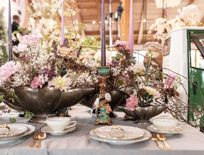 Be enchanted by dreamy, lovely colours such as soft pink, beige and peach flowers. Work with lots of different light points in the form of lamps and candles and don’t forget the extra magical accessories like butterflies for example.