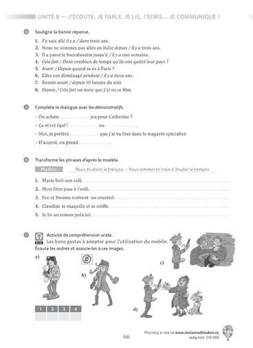 38 aktuální ceny a akce na www.ucebnice.fraus.cz 55 В ГОСТЯХ 16 2.2 Слушайте, повторяйте. Pozor na intonaci. — Я позвоню Наташе. — А Катя? — Дима приедет в субботу. — А Таня? — Вера слушает русские песни. — А Саша? Кто говорит? Где ты живёшь? Ты меня слышишь? На улице? Ты не забудешь? Какая красивая книга! Какая красивая песня! Какой красивый подарок! 16 2.3 Слушайте, повторяйте, читайте. Porovnejte intonaci. Говорит Алёша? Говорит Алёша. Алёша в Праге? Алёша в Праге. Он здесь уже долго? Он здесь уже долго. Он живёт у друга? Он живёт у друга. Друга зовут Павел? Друга зовут Павел. Павел — чех? Павел — чех. 16 2.4 Слушайте и повторяйте новые слова (с. 60), потом читайте. 16 2.5 Слушайте и читайте ещё раз тексты на с. 52. 19 TÉMA 2 Naskenuj QR kód nebo zadej 586 019 a procvičuj si více na www.skolasnadhledem.cz ⓬ Кто что преподаёт? Алексей Мария Виктор Иванович Павловна Сергеевич ⓭ Napište v přítomném čase. мылся Наш кот 5 раз в день. мылись Они после бассейна. мылся Я уже 10 минут. мылись Нет, мы всегда в ванной. мылась? Как долго ты ? мылись Вы в реке? Мы препода Я препода русский язык. А что вы препода ? n n n n n n n n n n n n n n n n n www. 586 036 Raduga+ 2 505 032 Raduga+ 3
