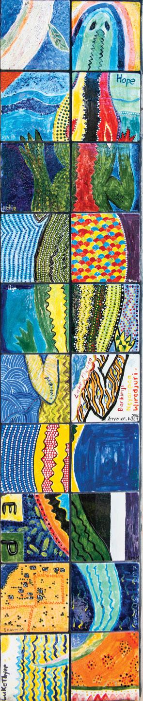 Tiles are designed by Dr. Ali Baker and painted by Aboriginal and Torres Strait Islander students during Orientation week at Flinders University.