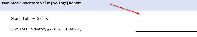 • Transfer the total from the Non-Stock Inventory Value (No Tags) report to the second page of the Branch Manager Month-end Certification which is the Summary of Reports