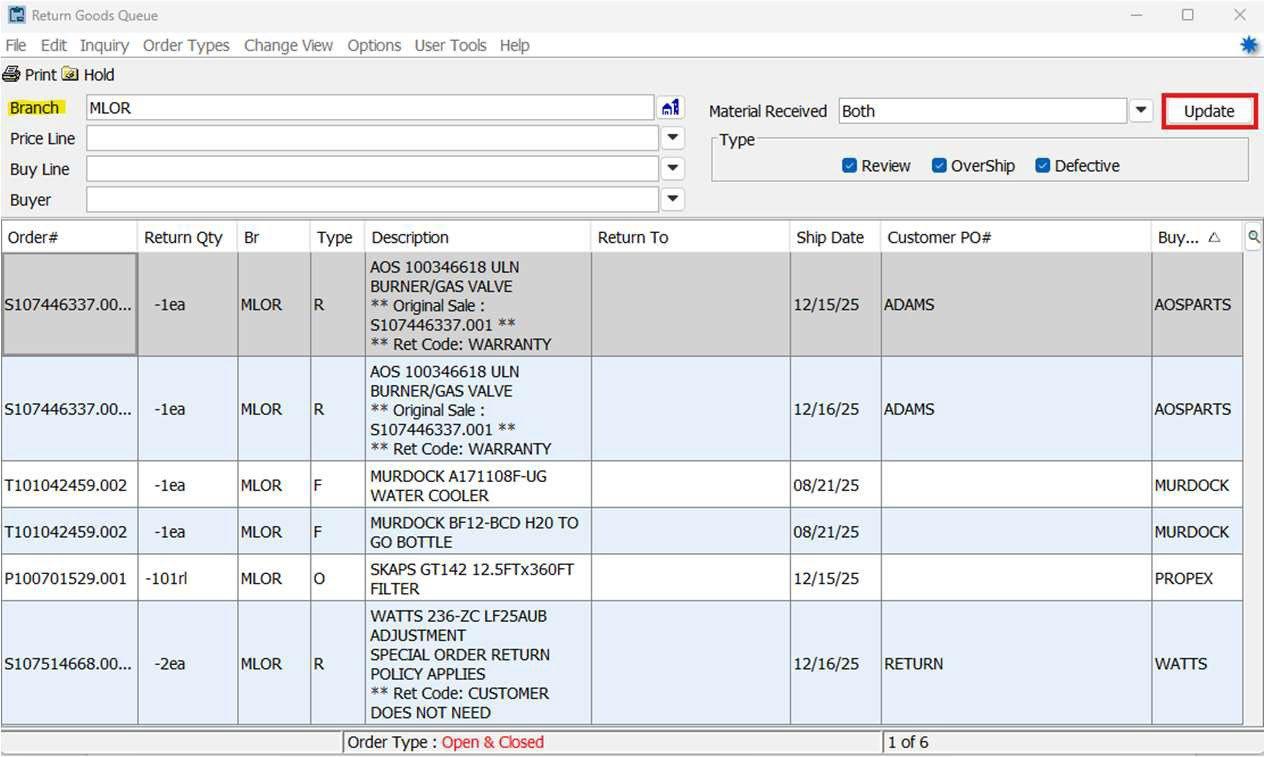 • Attach the Return Goods Queue report to the Branch Manager Monthend Certification