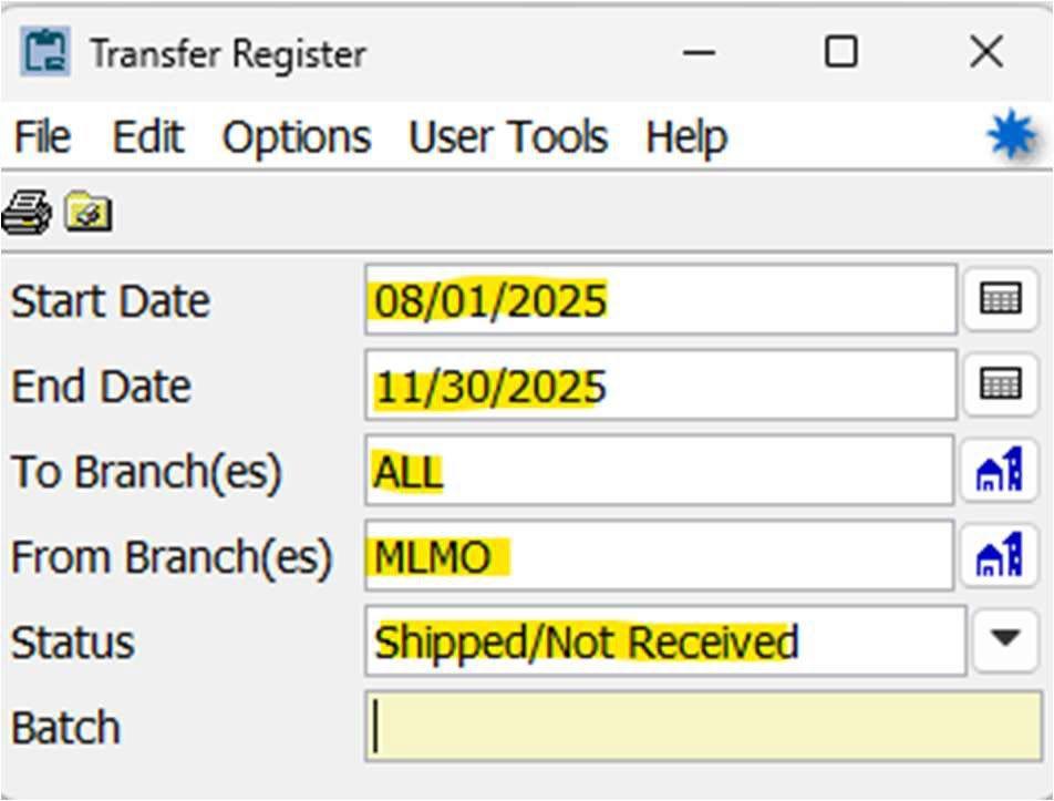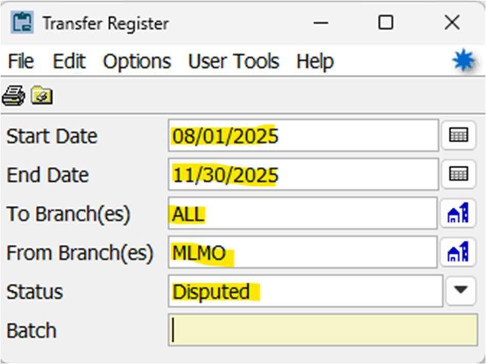 • Review the Transfer Register reports for Shipped/Not Received and Disputed and ensure items are in process of being resolved or have been resolved
