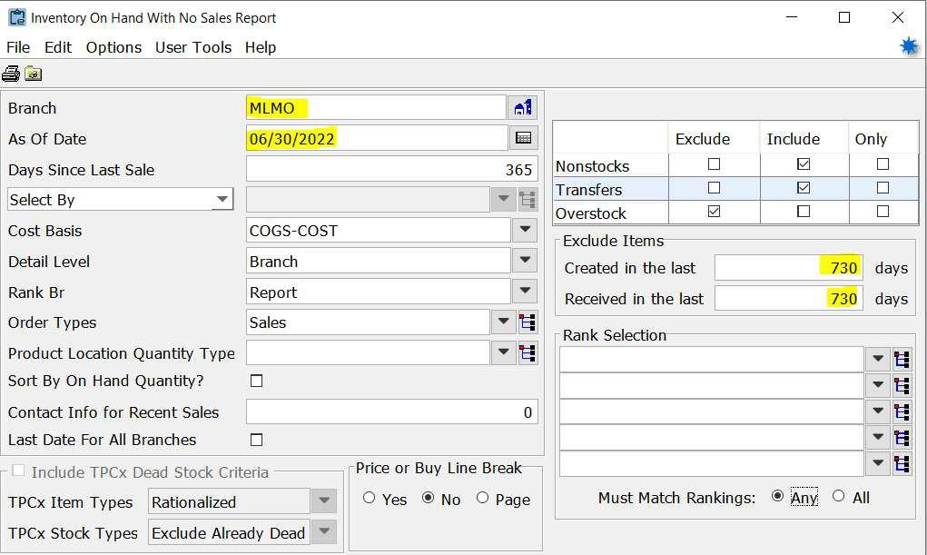 • Attach the Inventory on Hand with No Sales report to the Branch Manager Month-end Certification