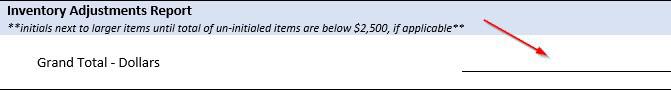 o Enter the total on the corresponding line for Inventory Adjustments Report Grand Total – Dollars
