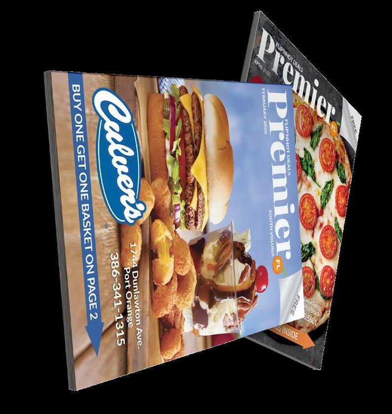 PREMIER FLORIDA Magazine | 23 MAGAZINE You may cancel anyti me aft er 3 months in writi ng via text or email prior to the 15th of the month before print. Promoti on available to new clients only. Some Restricti ons may apply. Price subject to change. 2 FOR 1 SPECIAL Limited Time Off er Premier FL Magazine Mailed Directly to Homes (Buy 1 Zone, Get The 2nd Month FREE) BUY 1 , GET 1 FREE Business Card Size: $199 ¼ Page : $399 ½ Page: $599 Full Page: $999 Choose Ad Size Flip’nHot Deals “Coupon Book” Reaching Locals & Visitors VOLUSIASEMINOLE ¼ PAGE FOR ONLY $199* ½ PAGE FOR ONLY $299* FULL PAGE FOR ONLY $399* *Price good for up to 1 year with conti nued monthly adverti sing. SYNERGY BRANDS Volusia/Flagler: 386.855.8817 Seminole: 407.986.1644 Offi ce@FlipnHotDeals.com PremierFLMag.com FlipnHotDeals.com Design included. Sign up deadline 15th of each month. VOLUSIA A) Port Orange, S. Daytona & Ponce Inlet B) Ormond Beach & Ormond by The Sea C) Daytona Beach & Daytona Beach Shores D) Deltona & Lake Helen E) Deland, Orange City & Debary F) New Smyrna, Edgewater & Oak Hill A) Sanford, Lake Mary & Heathrow B) Altamonte, Longwood & Wekiwa C) Casselberry & Winter Springs D) Oviedo/UCF SEMINOLE Choose Any Mailing Zone Below: A) Palm Coast & Flagler Beach FLAGLER MOST POPULAR SCAN ME TO ADVERTISE Mailed up to 40,000 homes monthly per market. In home dates 1st-3rd of each month. COMBO PACKAGE: Take $50 OFF Per Month A) Winter Park B) Apopka & Zellwood ORANGE $ 99 GET YOUR AD FOR ONLY (REG $199) Business card size $99 mo for the 1st 2 months 3 month commitment required Must pay via credit card /MO