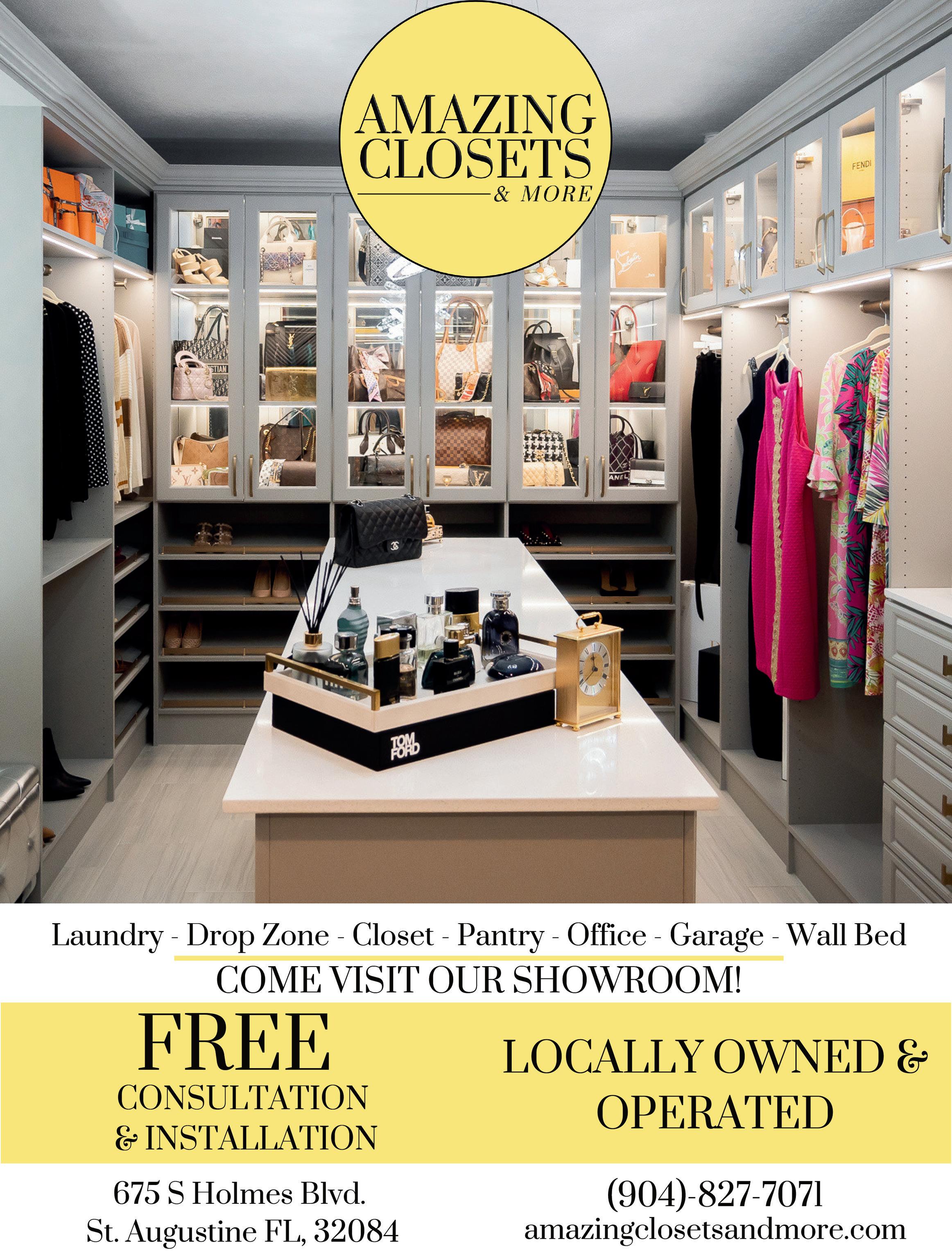 PREMIER FLORIDA Magazine | 7 S A L UT E REPLACEMENT WINDOWS 4000 DH Series Windows Hurricane Rated White Vinyl Double Hung Max Size 3ft. x 5ft. $415 COMPARE AT $600 ASK FOR DETAILS. STARTING AT This Window World® franchise is independently owned and operated by Wall to Wall Windows and Doors LLC d/b/a Window World of Northeast Florida under license from Window World Inc. Fully licensed & insured. License No. CBC1259710 Previous sales are excluded and o ers cannot be combined. ¹Subject to credit approval. Ask for details. †Valid only at participating locations. Previous sales excluded and o ers cannot be combined. Must mention this o er when calling. Expires 6/30/24. 0524 IN-HOME QUOTES FREE NO-OBLIGATION 904-788-7192 • WindowWorldNEFL.com 9450 Philips Highway, Suite 7, Jacksonville, FL - Angela & Brian Wall, Local Owners “Not only do we stand behind our windows... we stand on them!”® OFF† FOR ALL ACTIVE MILITARY, VETERANS & FIRST RESPONDERS (MUST SHOW ID) 3 StonewoodGrill.com Present This Ad For With Purchase Of $25 Or More With Purchase Of 2 Entrees AD REQUIRED. Limit one per check. Cannot be used with any other offers. $ 5 OFF COMPLIMENTARY BRUSCHETTA APPETIZER OR 3832 Baymeadows Rd #3 Jacksonville • (904) 739-7206 50% OFF HOME SWEET ORGANIZED HOME SCHEDULE YOUR FREE DESIGN CONSULTATION! Independently Owned & Operated Franchise © 2022 ShelfGenie SPV LLC. All Rights Reserved 904-586-3540 • SHELFGENIE.COM ENJOY MORE SPACE WITH CUSTOM PULL-OUT SHELVES FOR YOUR NEW OR EXISTING CABINETS INSTALLATION!* COUPON REQUIRED *Limit one offer per household. Must purchase 5+ classic/designer shelves.